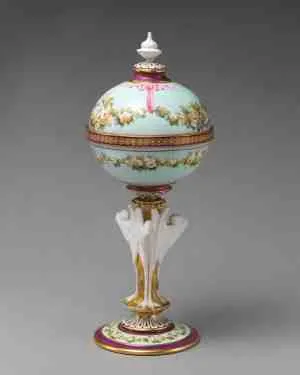 ミントンのポプリポット。ヴィクトリアの工芸品ではこのようなガーランドの文様が好まれて使用された。